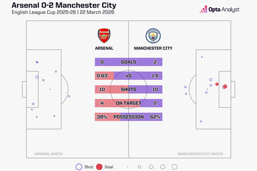 Takwimu za mchezo zinaonyesha kuwa City waliutawala mchezo kwa umiliki wa mpira wa 62% huku wakitengeneza nafasi nyingi za kufunga ambapo kati ya mashuti 10 waliyopiga mawili yalilenga lango na kupata magoli mawili.