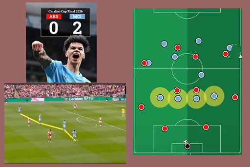 Kwasababu silaha kubwa ya Arsenal wakati wa ujenzi wa shambulizi ni kuanzia nyuma kwa kipa wao ili kuwavuta wapinzani kushawishika kuwafuata kuwashinikiza kukosea na kuwapora mpira, kisha wao kutoka kwa wachezaji wao kupata nafasi katikati ya mistari uzuiaji huku wachezaji wao wakibadilishana nafasi ili kuwavuruga wapinzani, Man City hawakuingia kwenye mtego huo
