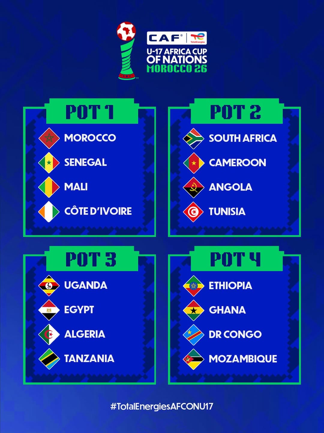 Kwenye droo hiyo leo timu ya Taifa ya Tanzania (Serengeti Boys) wapo poti namba 3 kati ya mapoti manne yenye timu 4 kila mmoja.