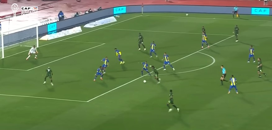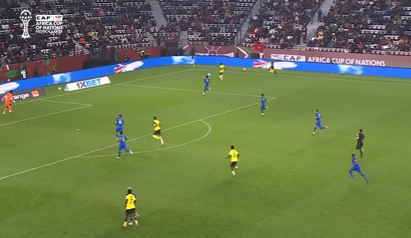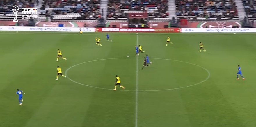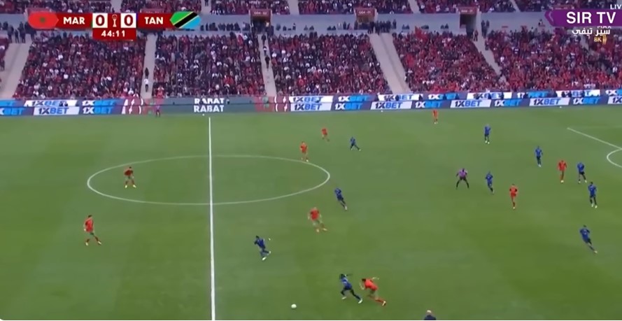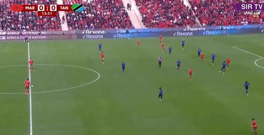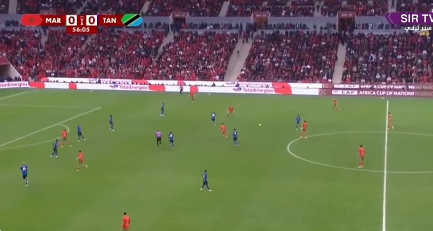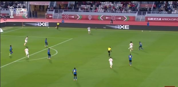 - Njia ya Pembeni, Zimbwe na Mnoga walizuia mawasiliano mabeki wa pembeni wa Morocco, Hakimi na Mazraoui kwenda kwa washambuliaji wa pembeni waliosogea kutengeneza pembetatu, pembeni mwa uwanja, Diaz & Ezzalzouili na viungo katikati ya mistari El Khannouss & Saibari (Wide Progression & Penetrations)