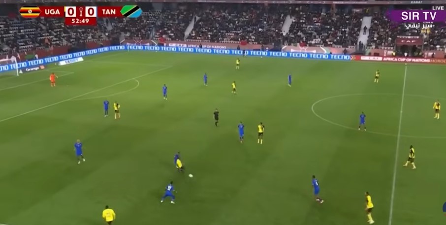 Mpira ukianza kuvuka nusu ya uwanja, Stars walipunguza presha ya uzuiaji na kubadili mfumo kutoka kuwa 4-1-4-1 na kuwa 4-4-2 na na kuwa karibu karibu huku mistari yao ya uzuiaji ikizuia njia za Uganda kuweza kufika langoni mwao kwa;