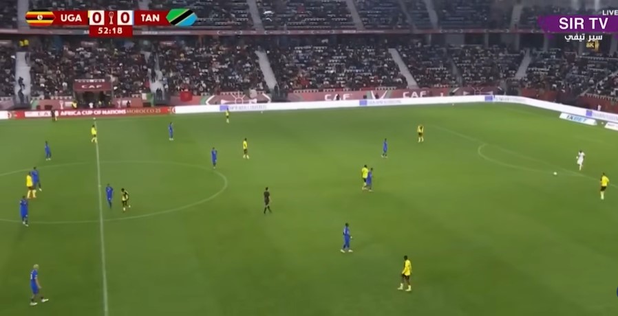 - Njia ya Pembeni, Msuva na Tarryn walizuia mawasiliano wachezaji wa pembeni wa Uganda, Okello na Kayondo kwenda kwa viungo wao waliosogea kutengeneza pembetatu, pembeni mwa uwanja, Bobosi na Alhassan, au viungo washambuliaji katikati ya mistari Mutyaba na Mato (Wide Progression & Penetrations)