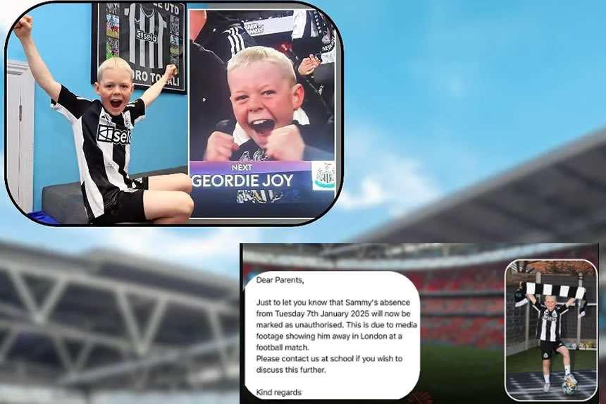 Sammy Scott, shabiki wa Newcastle United mwenye umri wa miaka tisa, alitoroka shule akidai kuwa anaumwa ili kusafiri na baba yake kwenda London kutazama mechi ya nusu fainali ya Kombe la Carabao dhidi ya Arsenal katika Uwanja wa Emirates.