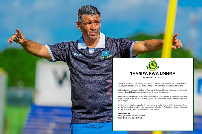 Klabu ya Yanga imetambulisha aliyekuwa Kocha mpya wa klabu ya Singida Black Stars Hamdi Miloud mwenye Uraia wa nchi mbili za Ufaransa na Algeria kuwa kocha mkuu wa klabu yao kurithi mikoba ya kocha Sead Ramovic.